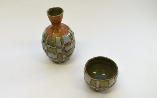 釉彩酒器セット 徳利 お猪口 2個 陶芸品 《受注制作》