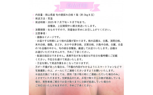 - 【2025年先行予約】[大原観光果樹園]岡山県産 旬の朝採れ白桃 1箱(約3kg 8玉)