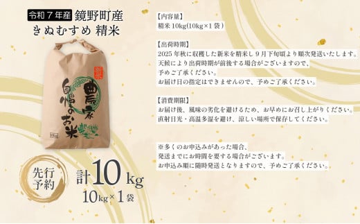 - 【先行予約】令和7年産 鏡野町産 きぬむすめ 精米10kg(10kg×1袋)【035-a004】