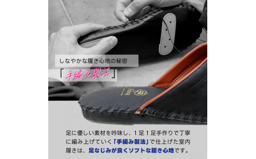 - [9723J]【 カラー:ブラック サイズ:M(25.0cm〜25.5cm)】上質な履き心地の日本製メンズルームシューズ 防汚素材 手編み 滑り止め 無機抗菌剤 軽量 丈夫