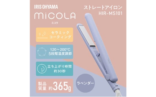 ストレートアイロン HIR-MS101-V ラベンダー アイリスオーヤマ ミコラ MiCOLA ストレート コテ 雑貨 日用品 電化製品 摩擦を軽減 スタイリング 4カラー コンパクト 軽量 海外対応可能