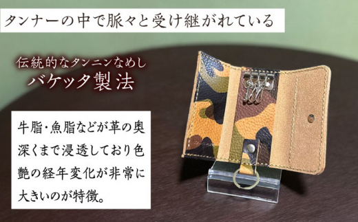 - 【ライトブラウン】【職人手作り】迷彩柄イタリア産エル・ヴァケーロ牛革 キーケース (迷彩柄2色)《築上町》【たけもとかばん】 革製品 レザー 牛革 [ABAM051] 11000円