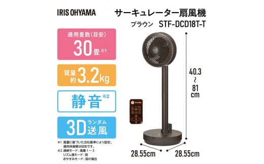 サーキュレーター扇風機 デザインモデル 上下左右首振り リモコン付き STF-DCD18T-T ブラウン 空気循環梅雨 部屋干し 節電対策 冷房 暖房 室内 首振り 送風機 アイリスオーヤマ