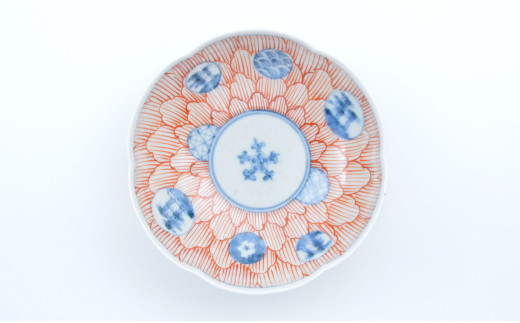 有田焼 文青 菊形小皿 3枚セット【まるぶんオリジナル】食器 器 うつわ 磁器 陶磁器 和食器 取皿 小皿 豆皿 菊 染付 赤絵 初期伊万里 お正月 ハレの日 赤 青 電子レンジ対応 A35-339