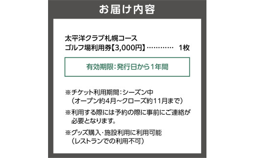 太平洋クラブ札幌コース ゴルフ場利用券【3,000円】|ふるさと納税 北海道 石狩市 プレー券 プレーチケット golf