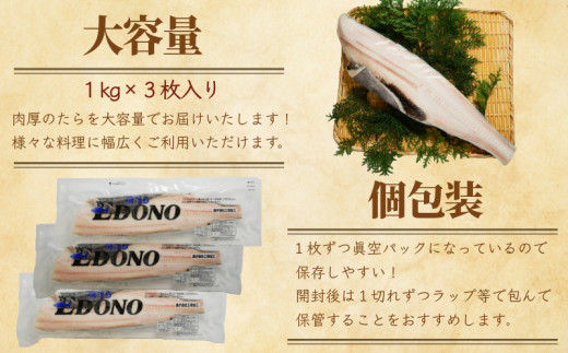 銀だら 約3kg 真空パック入り 銀鱈 鱈 タラ 湯豆腐 寄せ鍋 鍋 団らん 真空パック 食べやすい 個別冷凍 惣菜 おかず 料理 照り焼き 煮付 小分け 冷凍 冷凍品 長期保存 保存食 鮮度 旨味 高級食材 お取り寄せ グルメ 食品 魚 魚貝 大容量 ギフト 贈物 贈り物 プレゼント 海鮮 ふるさと納税 千葉県 銚子市 エドノフーズ