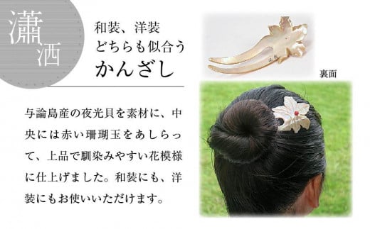 - 夜光貝と赤珊瑚を素材にした「かんざし」貝工房かざはな【KS-2】