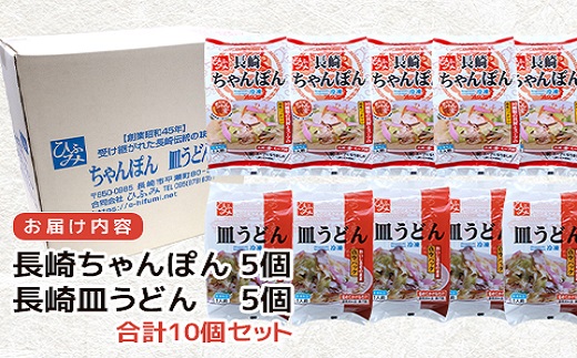 長崎伝統の味 ひふみの長崎ちゃんぽん・皿うどん各5個セット( ちゃんぽん 皿うどん 贈り物 お土産 お中元 お歳暮 内祝 ギフト 大好評 人気 おすすめ 長崎名物 名物 麺 おいしい )【D2-007】