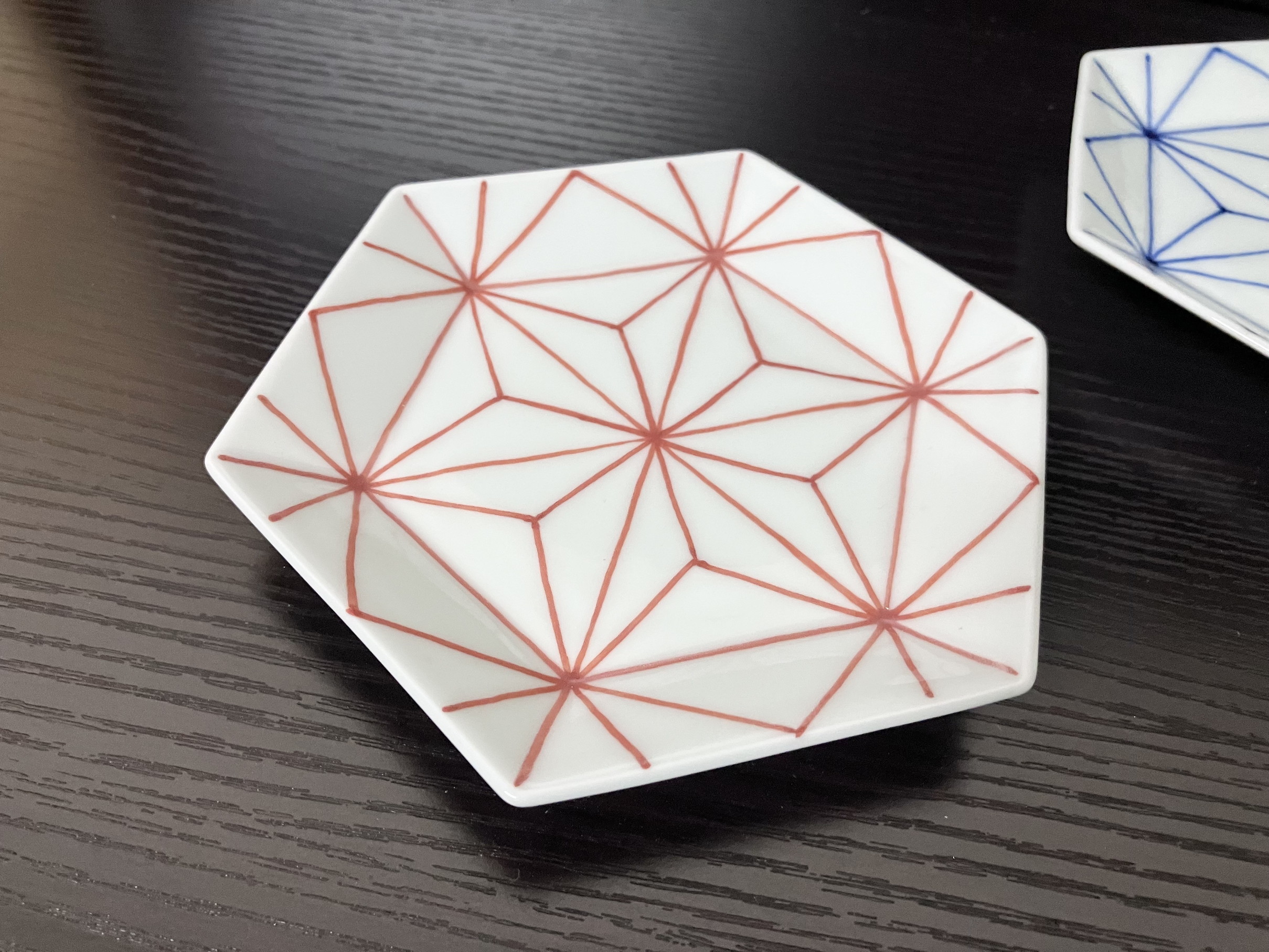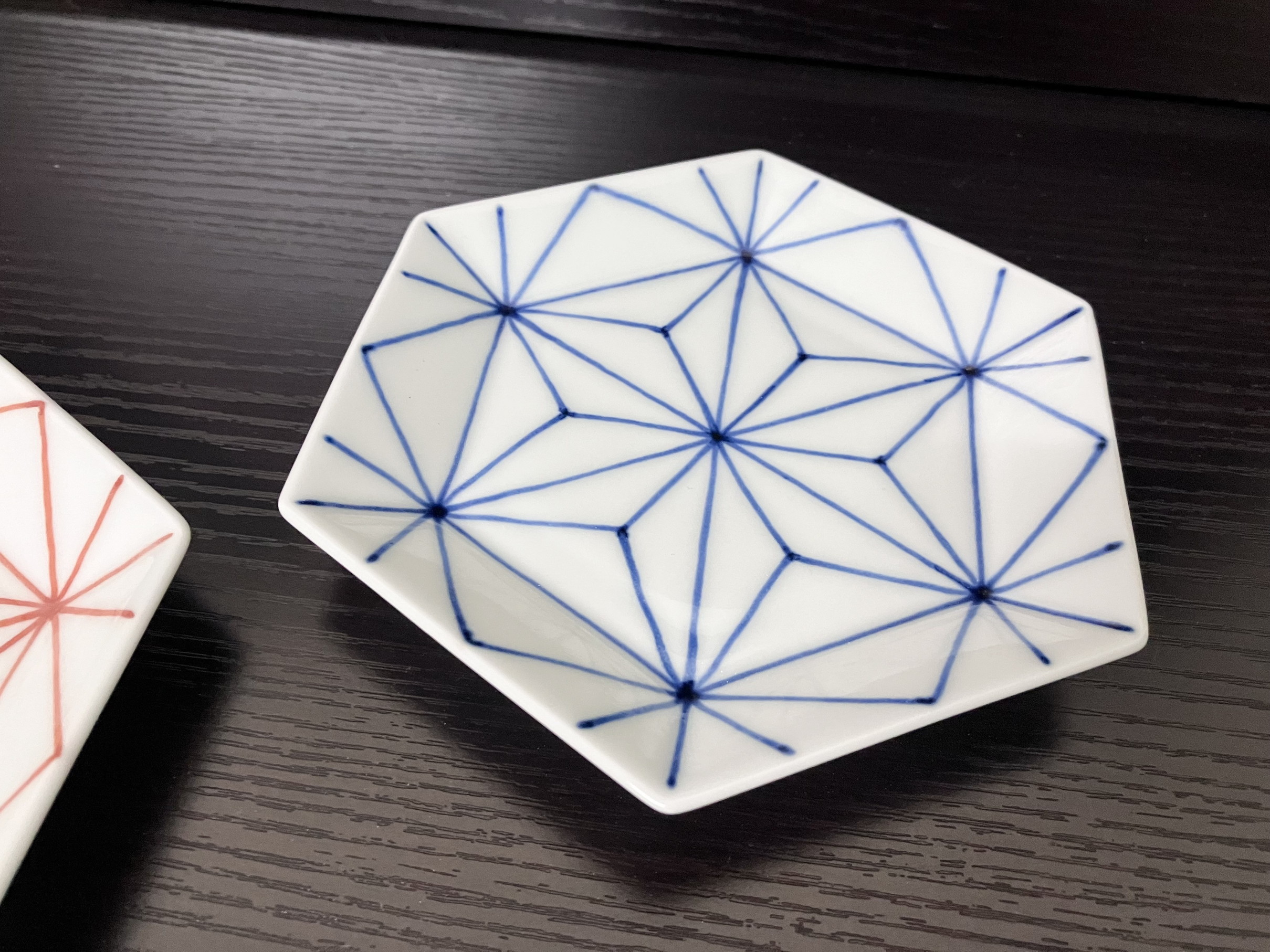 伊万里焼 麻の葉亀甲小皿(青・赤)セット H1075