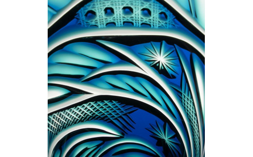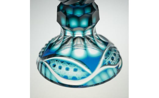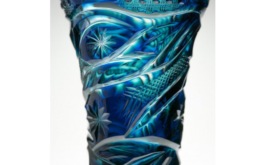 - 島津薩摩切子 与論町オリジナル脚付花瓶 ルリ緑