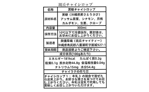 琉丘チャイシロップ【300ml×2本】- チャイティー チャイ マサラチャイ スパイス 本格的 こだわり チャイ シロップ お手軽 簡単 人気 おすすめ 無添加 無農薬 黒糖 国産 自然の恵み 優しい 味わい 沖縄県 八重瀬町【価格改定】