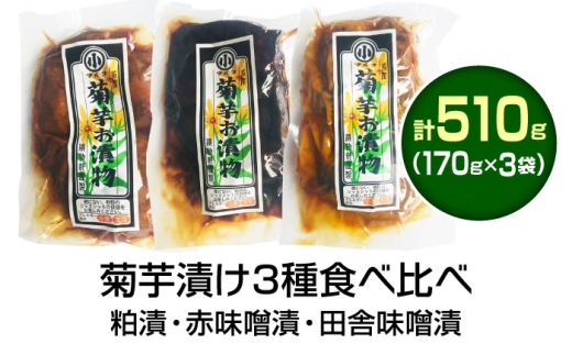 - 菊芋漬け3種セット 計510g 170g×3袋 (粕漬・赤味噌漬・田舎味噌漬) / 漬物 味噌漬け 菊芋 漬物 味噌漬け 味噌 菊芋 3種 食べ比べ セット おにぎり お茶漬け おつまみお取り寄せ 送料無料 贈答 ギフト プレゼント / 恵那市 / マルコ醸造 [AUCT011]