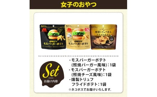 - <訳あり セットが選べる!> お試し 訳アリ じゃがスナック 【アソート・女子のおやつ】 (3袋・1袋最大50g) 照焼チーズ 照焼バーガー トリュフ 簡易梱包 お菓子 おかし スナック おつまみ ポテト モスバーガー 食べ比べ 送料無料 常温保存【man225-B】【味源】