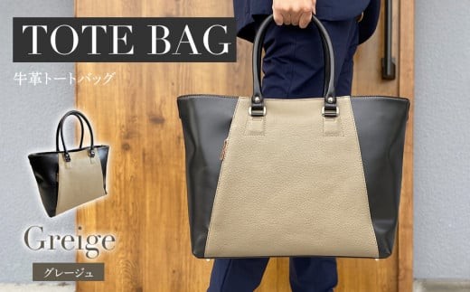 - ビーゴ ( トートバッグ )( 牛革 ・ グレージュ ) A4 収納 ファスナー 底鋲 おしゃれ おすすめ 福岡県 大木町 ナデルファーデン BK044