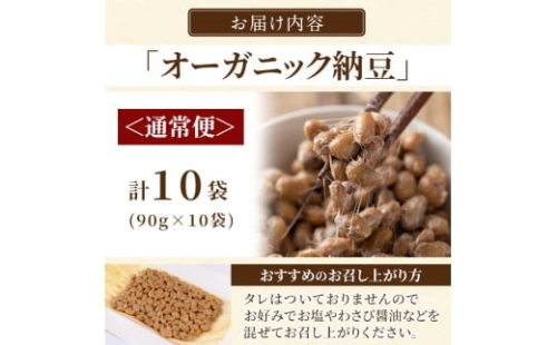 - K-599-A <通常便>国産!有機JAS認定・オーガニック納豆(計10袋・90g×10袋)【お多福たまご】霧島市 自然栽培 大豆 納豆 朝食