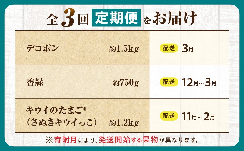 とれたて果物 3回定期便I 果物 フルーツ 果物定期便 フルーツ定期便 定期便キウイ デコポン濃厚 旬の果物 定期 人気 おすすめ 贈答 贈り物 青果物 糖度 香川県 _mk165-t073