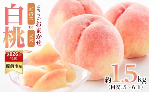 【2026年発送分 先行受付開始!】びぜん白桃 紅清水白桃・末木白桃のうち1品種 約1.5kg(令和8年6月下旬~7月頃発送)【岡山県備前市産 紅清水白桃 末木白桃 うち1品種 約1.5kg (5~6玉目安)】