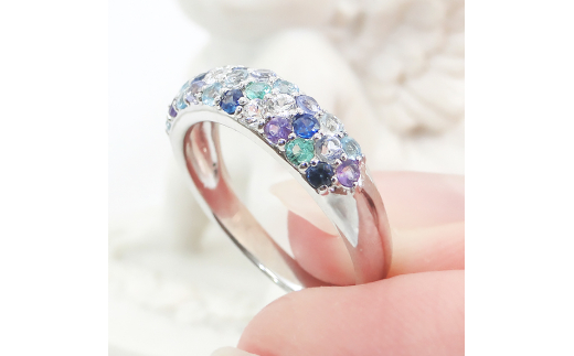 指輪 プラチナ PT900 マルチカラー パヴェリング サファイア エメラルド 花畑 ブルー 青系 誕生石 カラーストーン【f235-b-pt】※11号 ALPAZ111-11