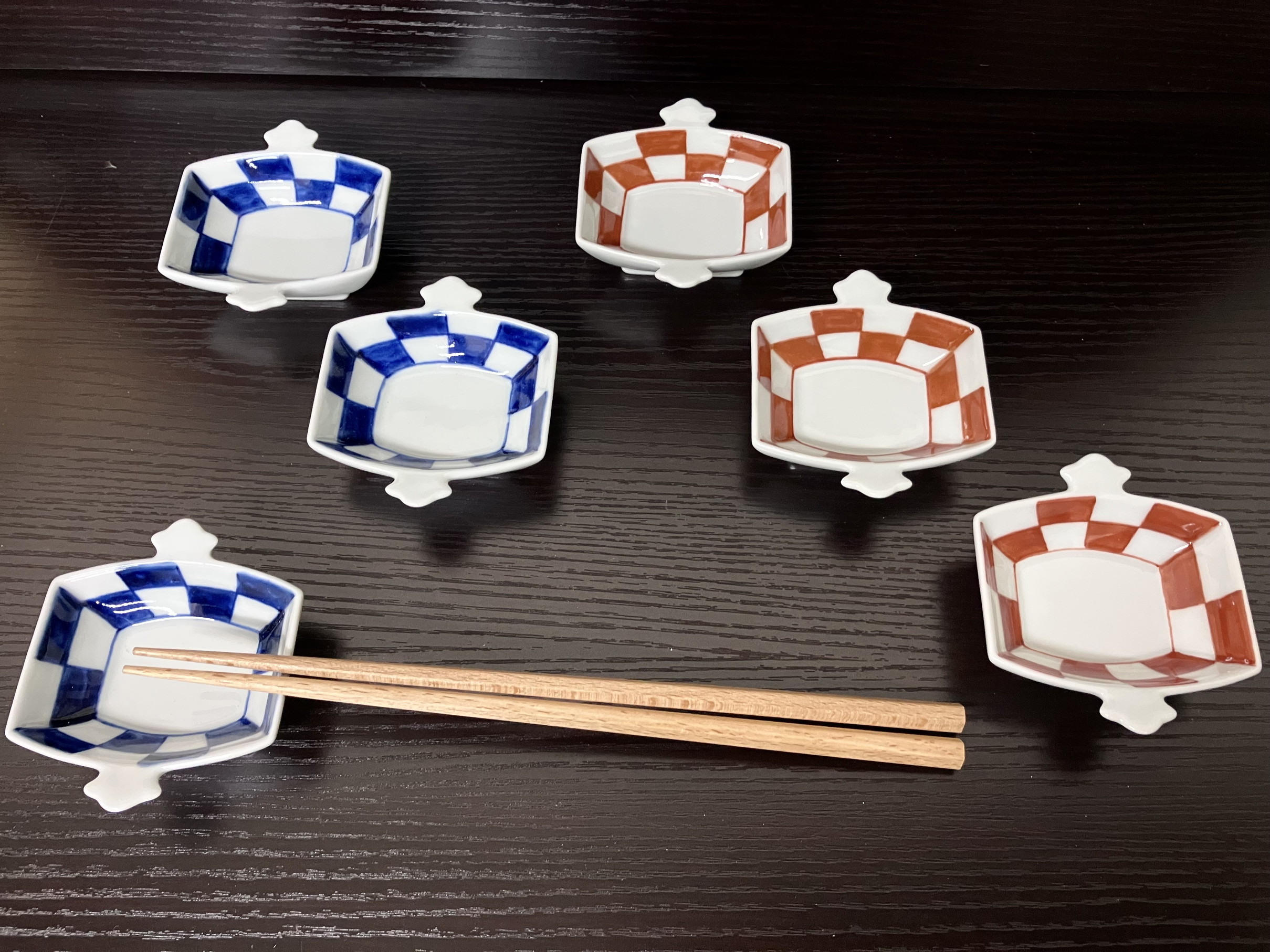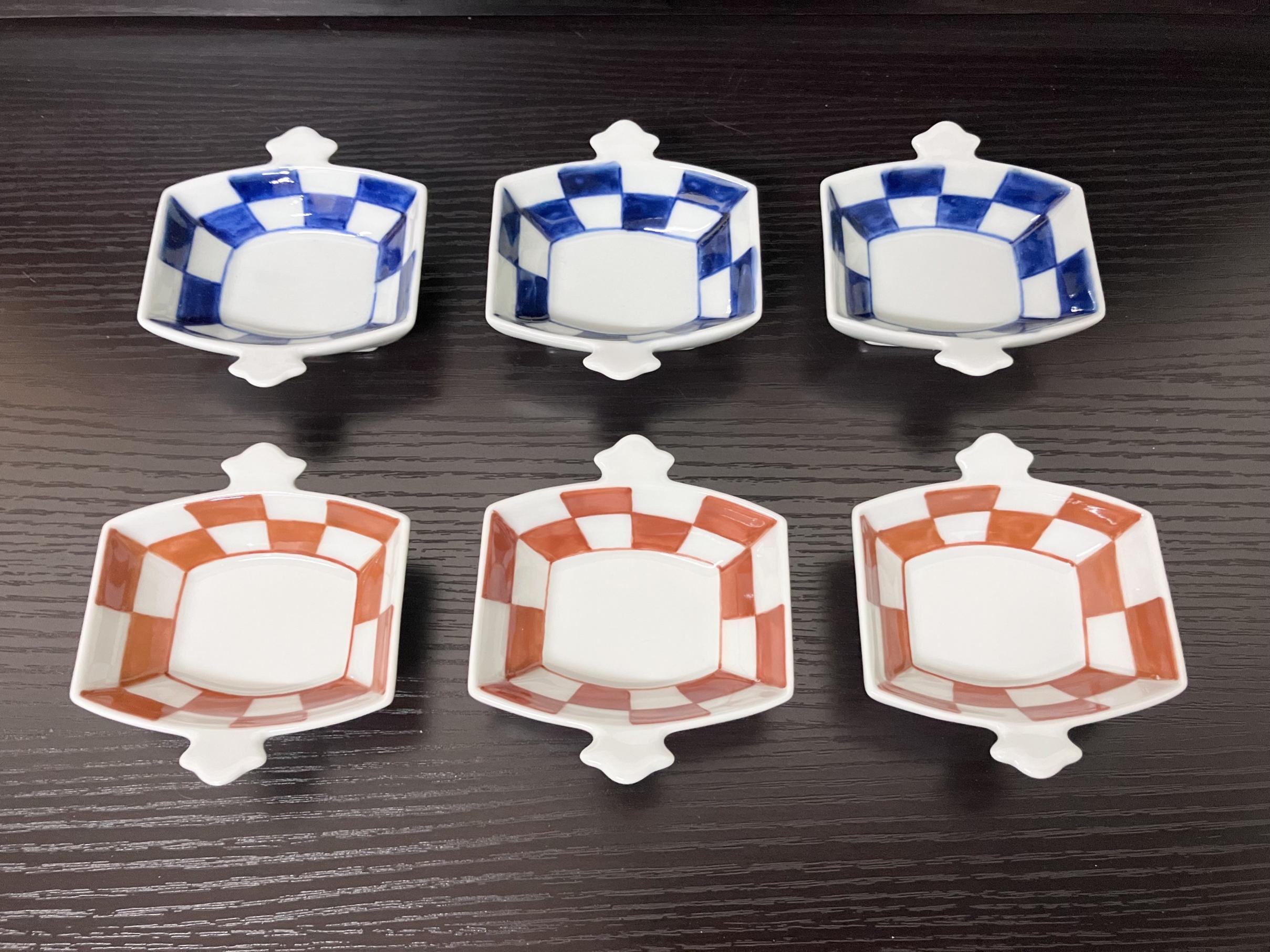 - 伊万里焼 市松コヅチ豆鉢(青・赤)6個セット H1066