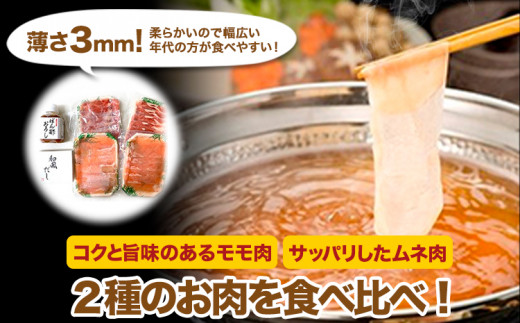 はかた一番どり鶏しゃぶセット 2~3人前 もも肉 むね肉 各200g ぽん酢 だし付き 朝ごはん本舗《60日以内に出荷予定(土日祝除く)》福岡県 鞍手郡 小竹町 肉 とり肉 鶏 はかた一番どり 鶏しゃぶ しゃぶしゃぶ ももスライス むねスライス ポン酢 和風だし
