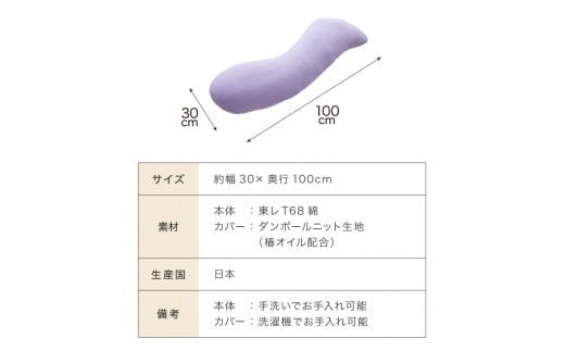 - 【日本製】椿オイル配合 抱き枕 ~洗える専用カバー付 ~ ライトピンク (20-54)
