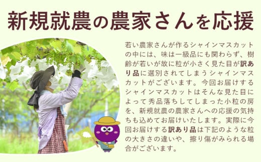 - 【先行予約】訳あり シャインマスカット 約1.3kg 《2025年8月上旬-8月下旬頃出荷》訳あり シャインマスカット マスカット ぶどう フルーツ 果物 大阪府 羽曳野市 シャイン 食べやすい