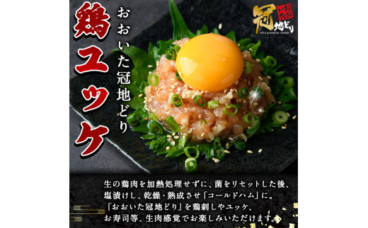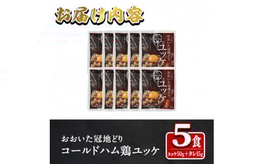 - おおいた冠地どり ユッケ (計5食分・タレ含65g×5P) 肉 鶏肉 ブランド鶏 冠地鶏 おつまみ おかず お惣菜 冷凍 国産 大分県 佐伯市【HE10】【(株)吉野】