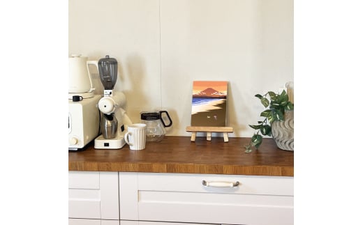 - 湘南・茅ヶ崎で描く、海を感じるイラストアート 『 湘南ランドスケープ11:湘南の富士と夕焼けの軌跡 』 キャンバスアートパネル(小) /絵画 風景 犬 猫