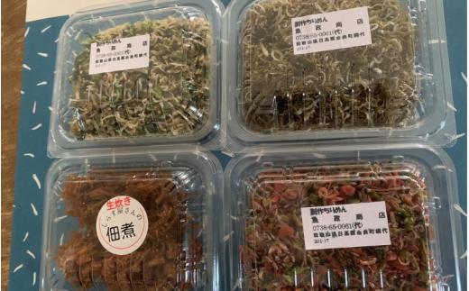創作ちりめん 4色セット / 高菜ちりめん 梅ちりめん 昆布ちりめん 生佃煮 佃煮 いわし 鰯 イワシ 国産 魚 お魚 さかな 食品 和歌山県 由良町 詰合せ セット チリメン ちりめんじゃこ 11000円 高菜 梅 昆布 佃煮【uoms009】