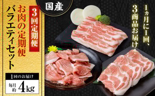 - 【3回定期便】お肉の定期便 豚肉セット (3ヵ月) 総計約12kg 国産 豚肉 バラ 肩ロース 小間切れ 【(有)山重食肉】[ATAP075]