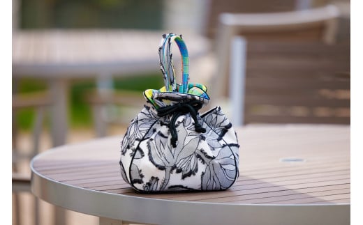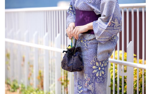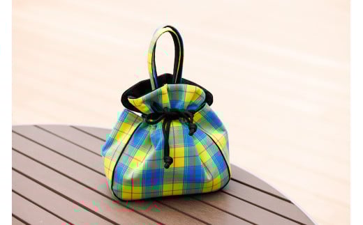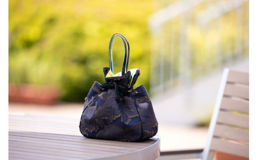 - 【播州織】ジャカード織・チェック柄 花びら巾着バッグ(44-38) ネイビー系