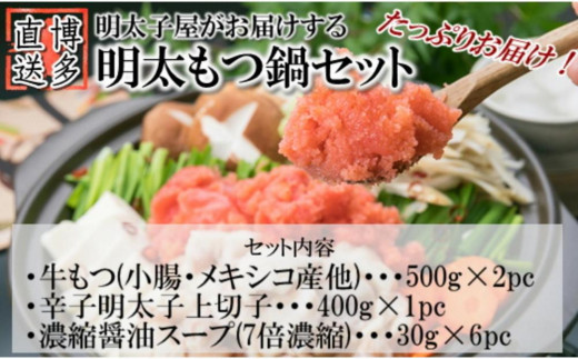 - 【訳あり】ホルモン計1kg 明太もつ鍋セット 約10人前(約5人前×2) 明太子 400g 醤油 海外産牛小腸使用