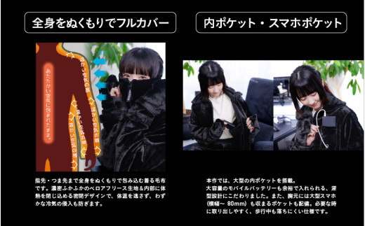 - 【Bauhutte】ゲーミング着る毛布 『ダメ着4SG』(HFD-4SG25-XL-BK) - 全身をぬくもりで包み込むゲーミング着る毛布