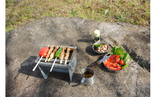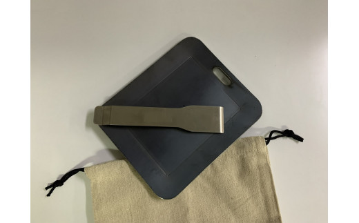 - ミニコン炉S(黒皮)&厚板鉄板 ソロキャン用(スクレーパー、巾着袋付き)のセット F4N-0063