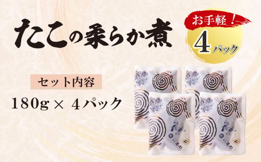 - U61-114 博多若杉 たこの柔らか煮 4パック(180g×4) タコ 蛸 煮物 おつまみ 晩酌 料理 惣菜 海鮮食品 魚介類 魚介 家庭用 福岡 冷凍 送料無料