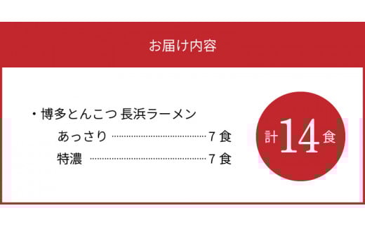 - 博多とんこつ 長浜ラーメン(あっさり・特濃)食べ比べ 14食セット KNS1403