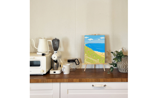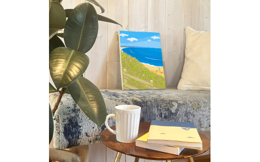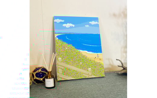湘南・茅ヶ崎で描く、海を感じるイラストアート 『 湘南ランドスケープ08:海辺のハマダイコン 』 キャンバスアートパネル(中) /絵画 風景 犬 猫