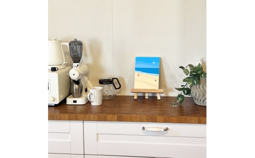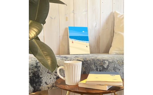 - 湘南・茅ヶ崎で描く、海を感じるイラストアート 『 湘南ランドスケープ01:波打ち際のキャッチボール 』 キャンバスアートパネル(小) /絵画 風景 犬 猫