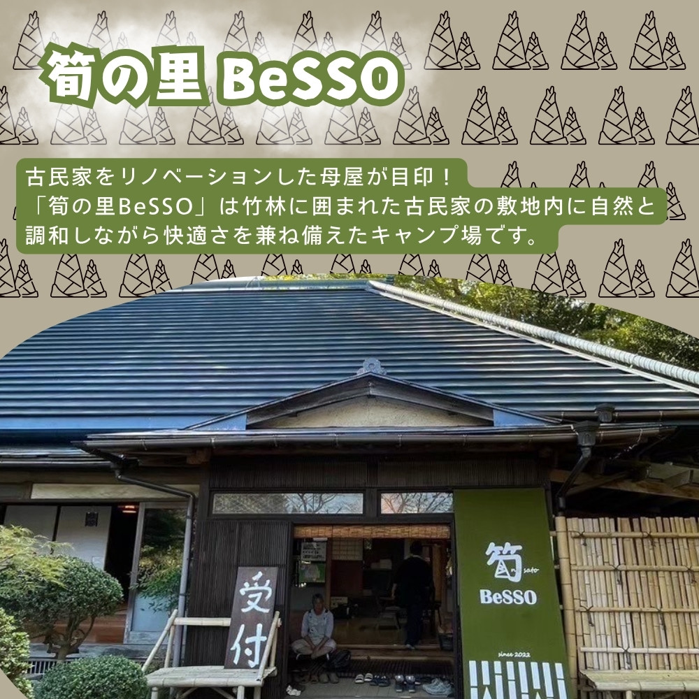 筍の里BeSSO キャンプ利用券 [竹林サイト・庭園サイト/ 1泊2日 / 大人2名+小中学生2名 ]千葉県 酒々井町 キャンプ 初心者向け 古民家リノベーション