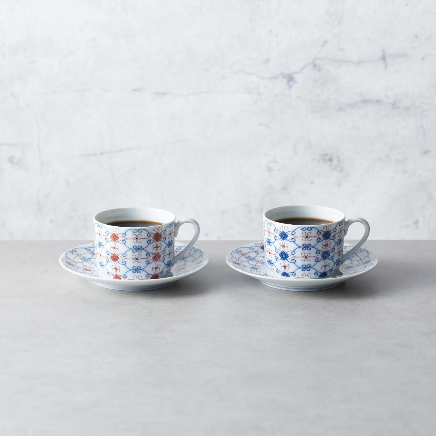 - 【伊万里焼】更紗文 珈琲碗皿 (柄選択・どちらか1客をお届け) H1159