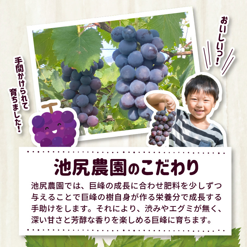 - 【先行予約】2025年7月下旬発送予定 池尻農園 ハウス巨峰 約1kg_巨峰 約 1kg ぶどう 3房 久留米市産 渋み エグミ 無い フルーツ 果物 期間限定 池尻農園 ハウス巨峰 福岡県 久留米市 お取り寄せ お取り寄せフルーツ デザート 2023年7月からお届けスタート 送料無料_Fg007