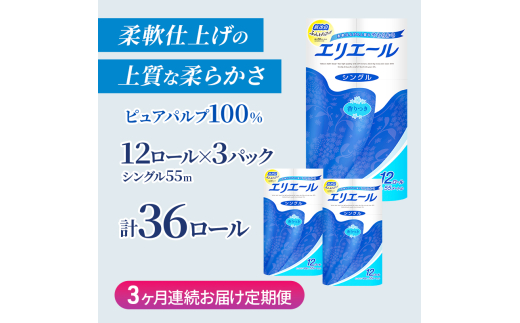 - 定期便 3ヵ月連続お届け エリエール 【少量3パック】 [アソートP] トイレットティシュー[シングル 55m]12R×3パック(計36ロール) トイレットペーパー 紙 防災 常備品 備蓄品 消耗品 生活必需品 送料無料 北海道 赤平市