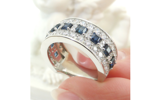 指輪 プラチナ PT900 ダイヤモンド 1.2ct 幅広 ブルーサファイア スクエア 誕生石 レディースリング 大ぶり ゴージャス ジュエリー【f249-pt-bs】※12号 ALPAZ133-12