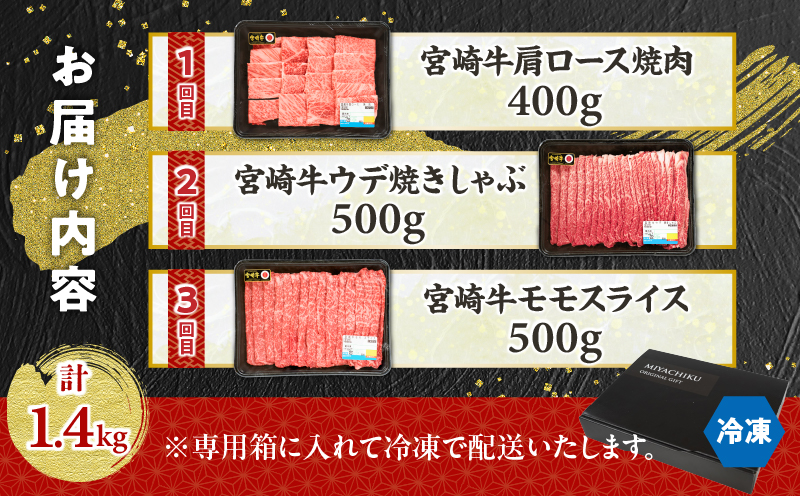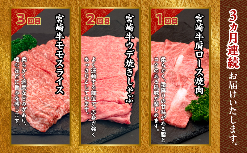 - 【3ヶ月定期便】 宮崎牛霜降り焼肉・赤身スライス焼きしゃぶ3ヶ月定期便_Tk031-t018