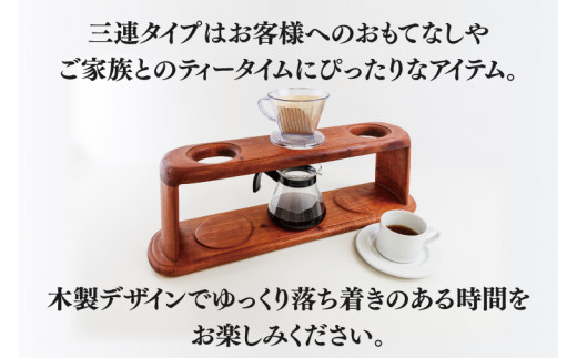 オイル仕上げ コーヒードリップスタンド(三連)【調理雑貨 雑貨 木製 手づくり コーヒー 珈琲 コーヒー豆 送料無料 茨城県 鹿嶋市】(KAC-22)