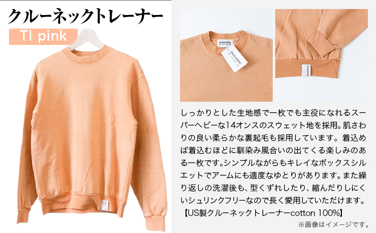 - 【Sサイズ】野の色を着る。温泉水・農業廃棄物で染色したクルーネックトレーナー TI pink 合同会社nosome 《90日以内に順次出荷(土日祝除く)》 送料無料 服 ファッション クルーネックトレーナー 染め 染色 ギフト レディース メンズ 北海道 本別町