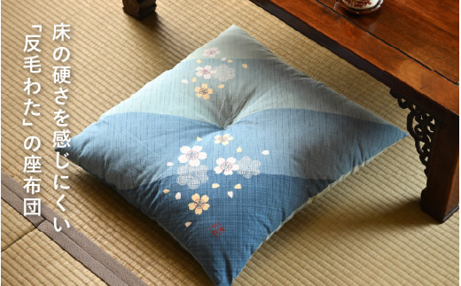 - 床の硬さを感じにくい「反毛わた」座布団 側地綿100%(銘仙判55cm×59cm)1枚【さくら】【ブルー】 [A-20404_03]