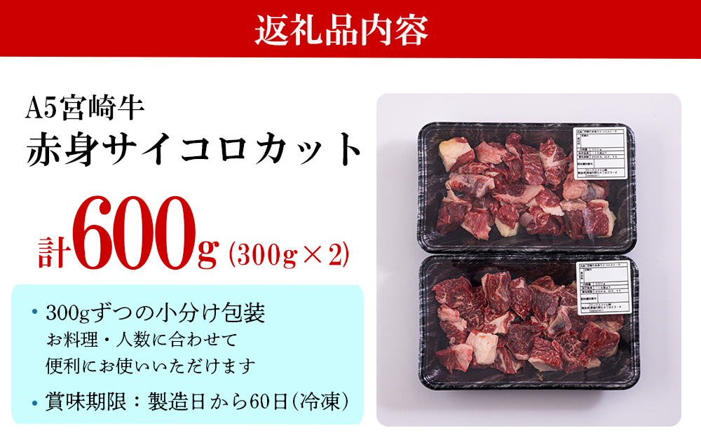 牛肉 赤身 宮崎牛 サイコロカット ステーキ 300g ×2 計 600g [ローカルブランディング 宮崎県 美郷町 31bb0024] 小分け 冷凍 牛 肉 焼肉 BBQ バーベキュー ステーキ A5