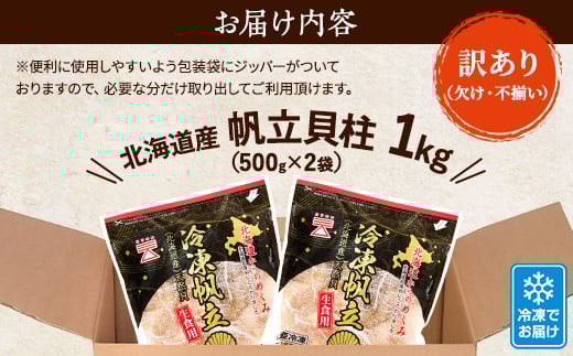 [訳あり]北海道産 帆立貝柱[特A]刺身用 500g×2袋 北海道 人気 おすすめ ホタテ 天然【1384609】