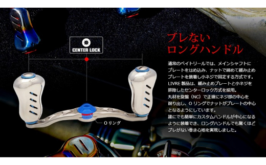 - 【チタン×ゴールド】LIVRE リブレ Feather 95(ダイワ左)亀山市/有限会社メガテック リールハンドル カスタムハンドル 国産 [AMBB082-2]